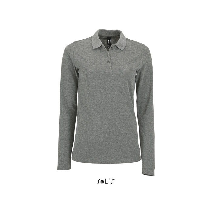 SOL'S PERFECT LSL WOMEN. Damska koszulka polo Piqué z długim rękawem. 100% bawełna czesana piqué 180gr, kołnierzyk rib 1x1, długie rękawy, plisa na 3 guziki, dopasowany krój, taśma wewnątrz kołnierzyka. OEKO-TEX®. Sprzedawana tylko z nadrukiem.