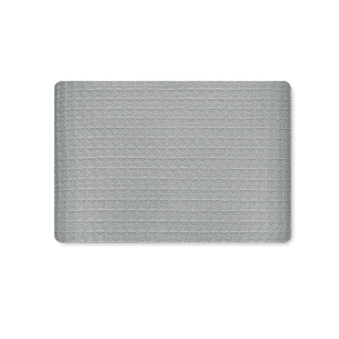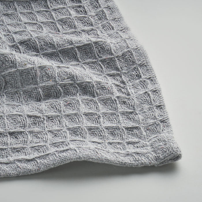 Lekki bawełniany koc o stukturze waflowej i gramaturze 350 gr/m². Zapakowany w białe pudełko.