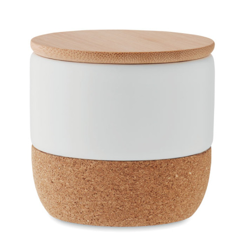 Świeca o zapachu świeżego lnu z wosku roślinnego w kamionkowym pojemniku z bambusową pokrywką i korkową podstawą. 80 gr. Czas palenia: 7,5 godziny. Bambus jest produktem naturalnym, dlatego mogą wystąpić nieznaczne różnice w kolorze, wzorze i rozmiarze.