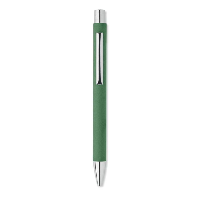Długopis z przyciskiem z papieru z recyklingu z metalowym klipem i plastikowymi elementami. Niebieski tusz.