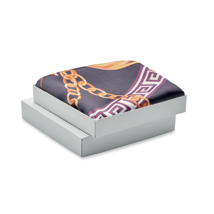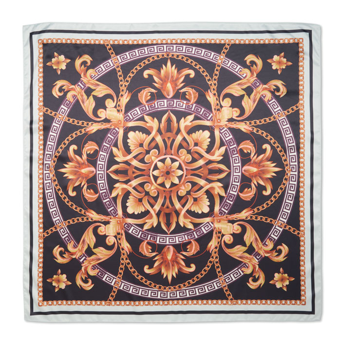 Szal z satynowego poliestru z recyklingu ze wzorem.