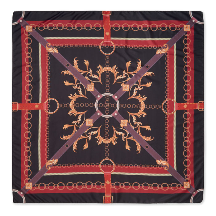 Szal z satynowego poliestru z recyklingu ze wzorem.