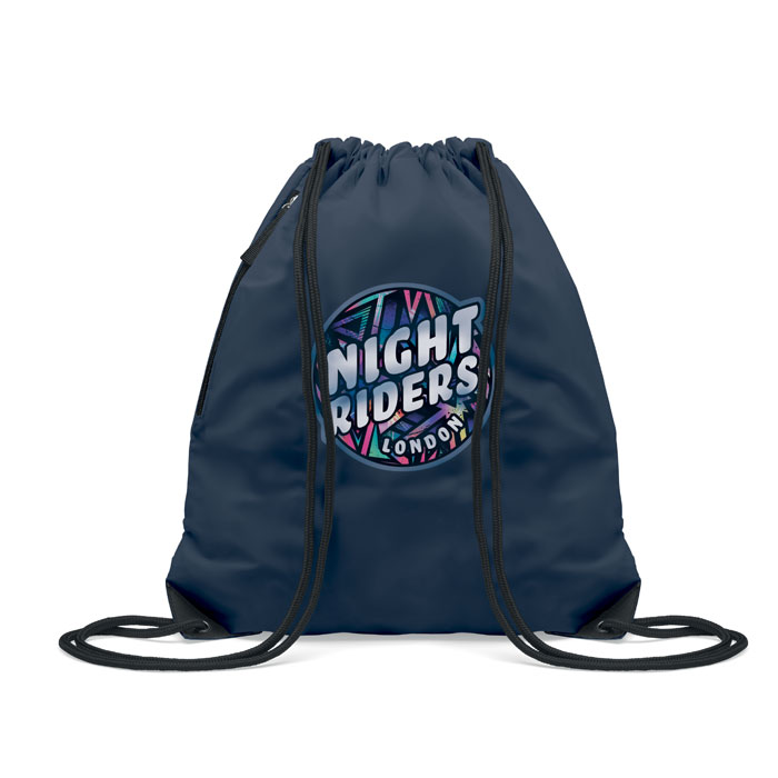 Worek ze sznurkiem wykonany z poliestru 190T pokrytego odblaskowymi granulkami. Z jednej strony zapinana na zamek kieszonka. Gruby sznurek.
