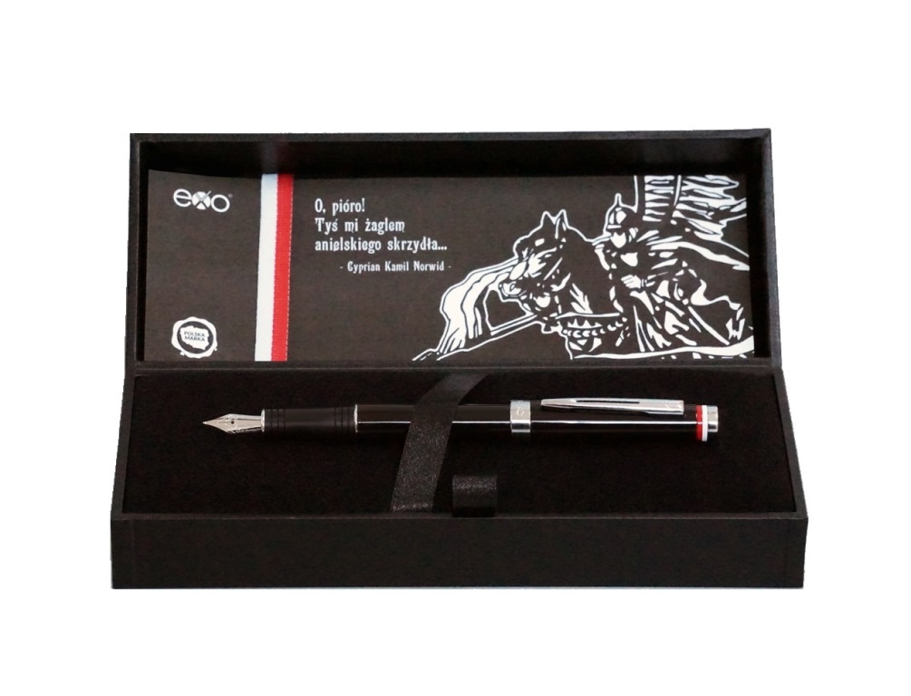 Pióro wieczne EXO Husaria Polska, czarny korpus, motyw flagi, wykończenia chromowane, etui Husaria / Czarny