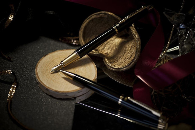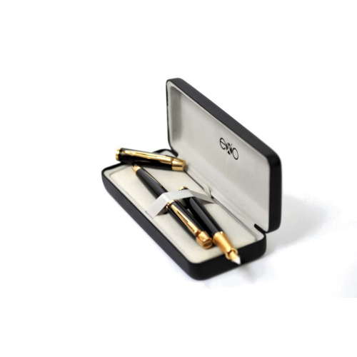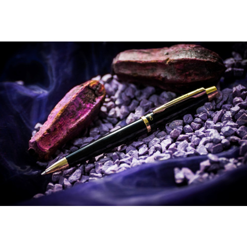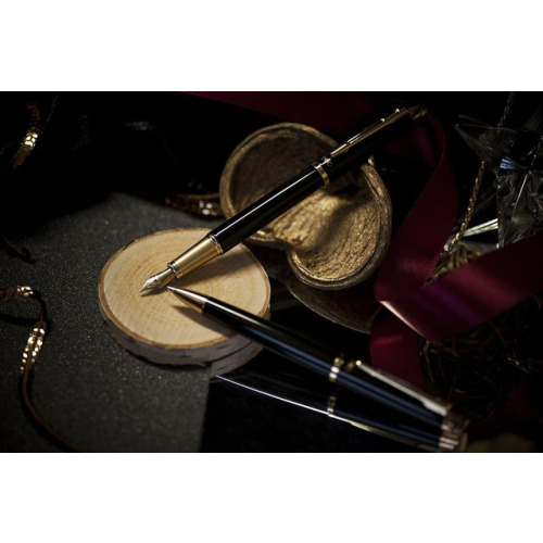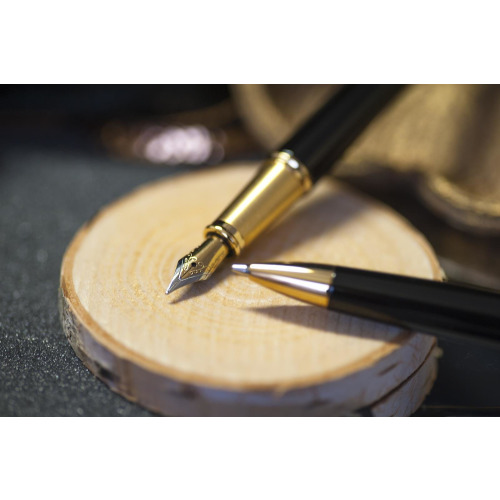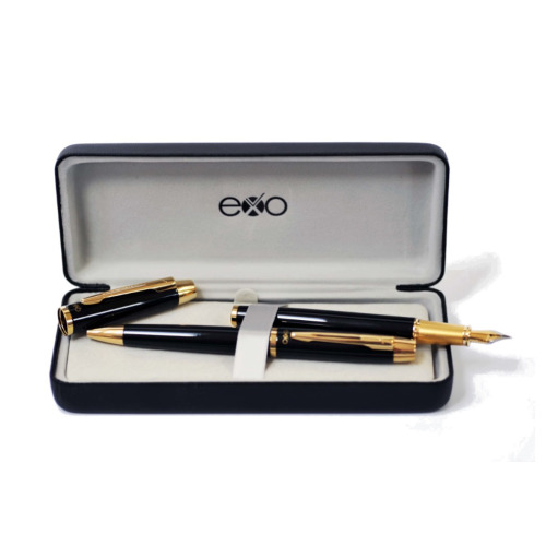Zestaw (pióro wieczne i długopis) EXO Aries, czarny lakier, wykończenia złote, etui premium / Czarny