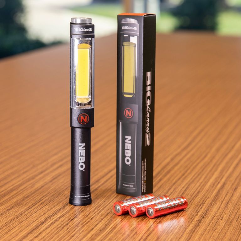 Latarka Big Larry2 w kolorze czarnym, amerykańskiej firmy NEBO®, osiąga moc 500 lumenów w technologii COB LED. Posiada 4 tryby światła (wysokie, robocze, czerwone, migające awaryjne). Produkt jest wodoodporny, wykonany z anodowanego aluminium samolotowego, posiada magnetyczną podstawę.