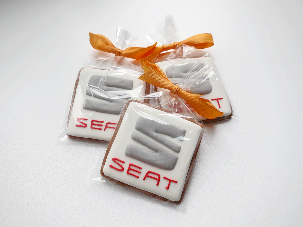 Lukrowany piernik z logo lub nazwą firmy według Twojego wzoru, ręcznie dekorowane lukrem królewskim.