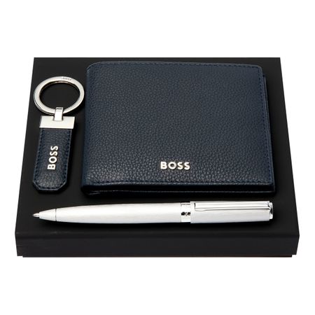 Zestaw Hugo Boss: breloczek, porrtfel oraz pióro kulkowe.