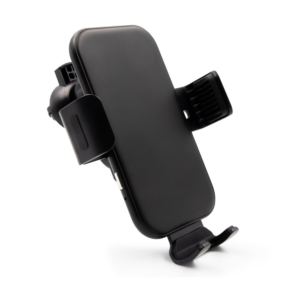 Samochodowy uchwyt do telefonu, ładowarka bezprzewodowa 15W, działa z telefonami posiadającymi możliwość ładowania indukcyjnego, funkcja szybkiego ładowania, mocowanie do wentylacji, dwa przyciski sensoryczne do sterowania zaciskami, funkcja umożliwiająca wyjęcie telefonu po odcięciu zasilania, zasięg ładowania bezprzewodowego do 6 mm, wejście USB typu C 5V/2A, 9V/1.67A, 12V/1.67A, wyjście bezprzewodowe 5V/3A, 5V/2A, 5V/1.5A, 5V/1A, 100 cm kabel USB typu C w komplecie