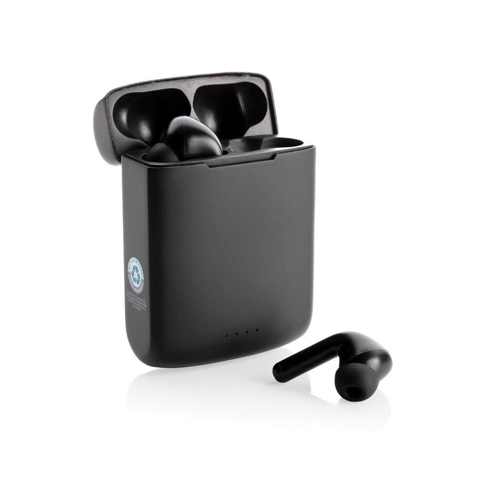 Słuchawki bezprzewodowe BT 5.3, zintegrowany panel słoneczny do ładowania słuchawek, prędkość ładowania solarnego 5V/0,05A, wbudowany mikrofon, funkcja odbierania połączeń, wykonane z ABS z recyklingu z certyfikatem RCS, całkowita zawartość materiałów z recyklingu obliczona w oparciu o wagę całkowitą przedmiotu: 19%, czas odtwarzania na średnim poziomie głośności do 5 godzin, zasięg do 10 m, kabel z TPE z recyklingu z certyfikatem RCS w komplecie, w pudełku z papieru kraftowego z certyfikatem FSC® mix