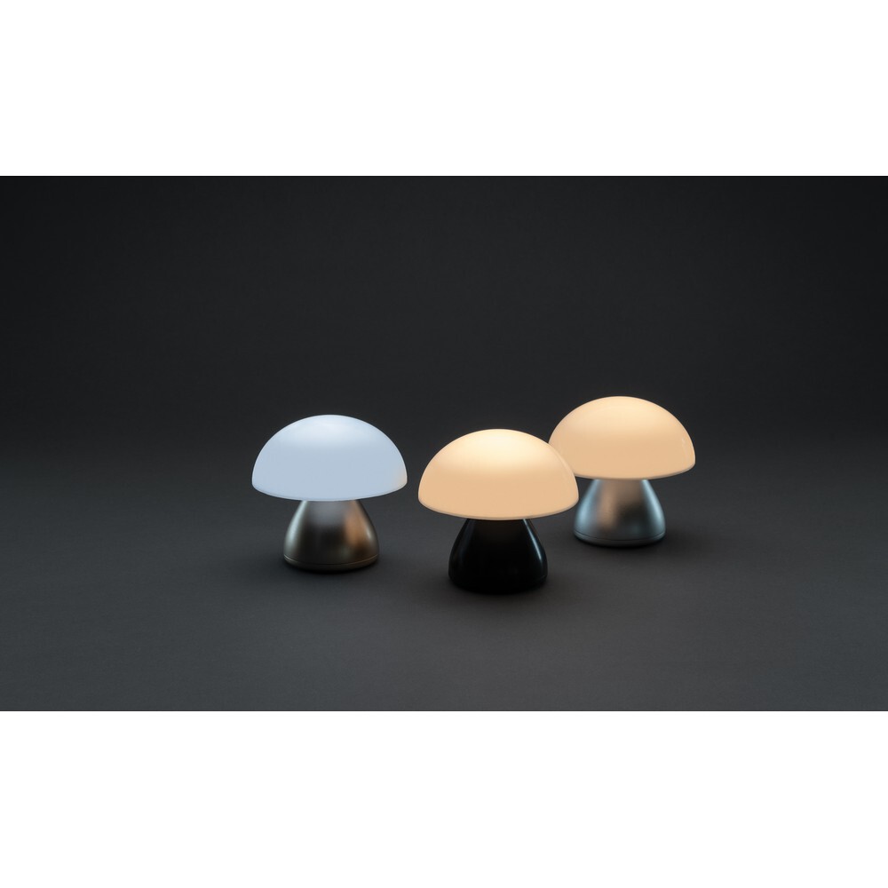 Lampka na biurko, 2 tryby świecenia, przycisk dotykowy w podstawie, wbudowany akumulator pozwala na świecenie do 5 godzin na jednym ładowaniu, ponowne ładowanie w 2 godziny, wejście USB typu C do ładowania, wykonana z ABS i aluminium z recyklingu z certyfikatem RCS, całkowita zawartość materiałów z recyklingu obliczona w oparciu o wagę całkowitą przedmiotu: 42%, w pudełku z papieru kraftowego z certyfikatem FSC® mix