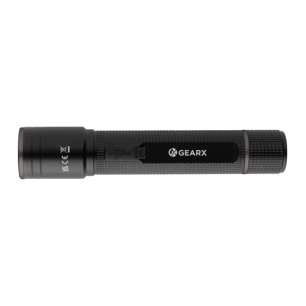 Kieszonkowa latarka Gear X, ładowana przez USB, aluminium z recyklingu / Czarny