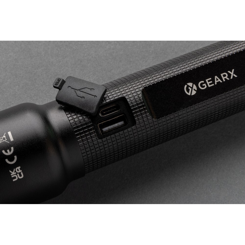 Duża latarka Gear X, ładowana przez USB, aluminium z recyklingu / Czarny