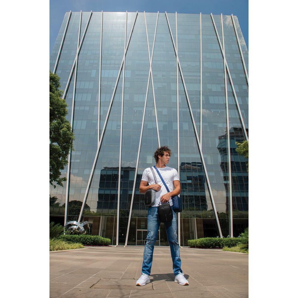 Torba na ramię, saszetka, ukryta kieszeń z tyłu, ukryta kieszeń na butelkę, wykonana z materiałów z recyklingu, dzięki zastosowaniu technologii fizycznych znaczników AWARE™ wykorzystane materiały są identyfikowalne z pochodzenia