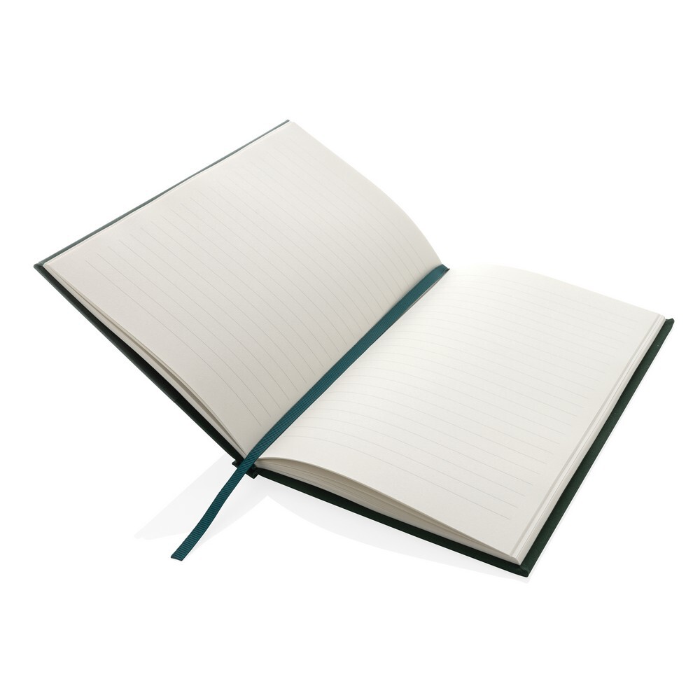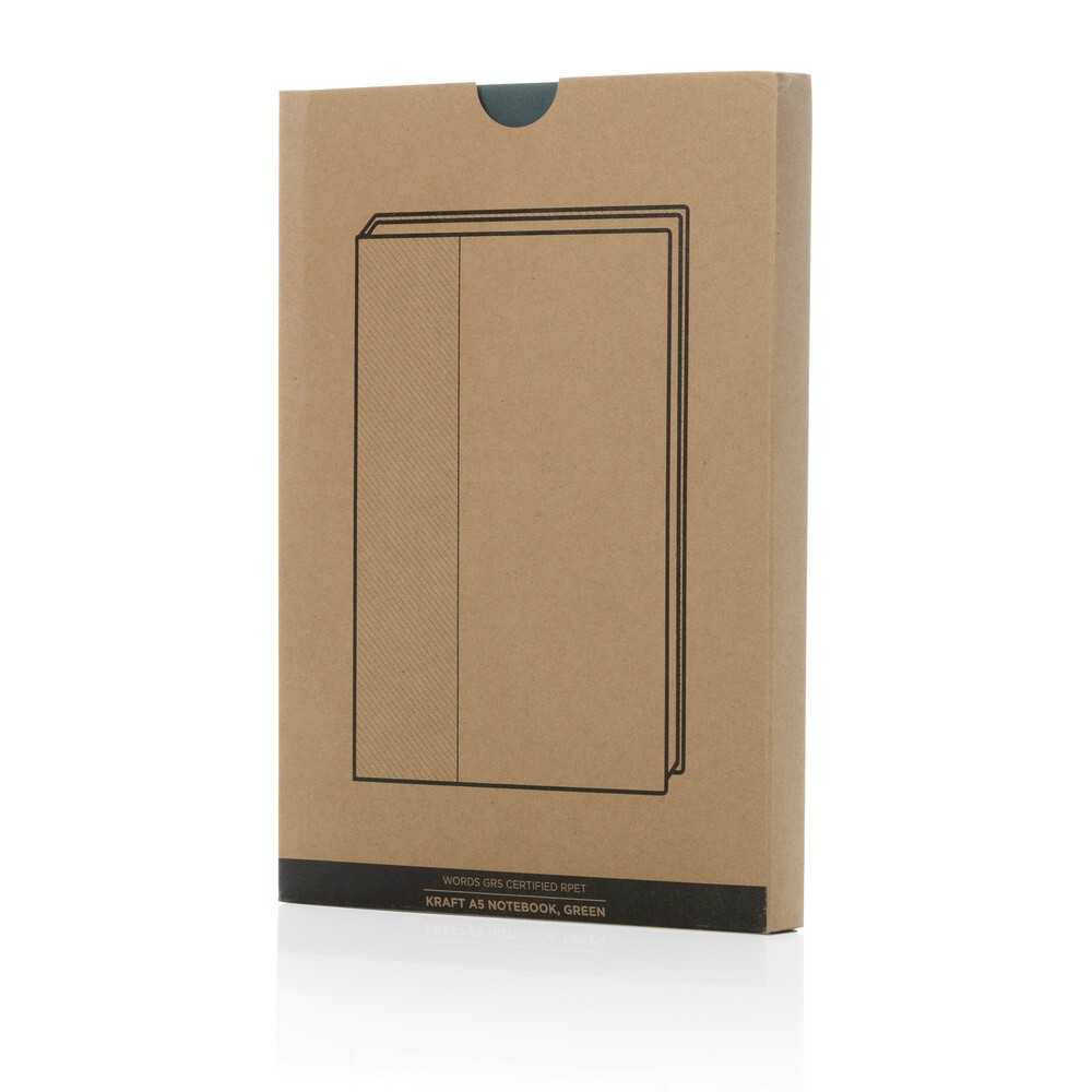 Notatnik (80 białych kartek 80 g/m2 w linie), twarda okładka, wykonany z materiałów pochodzących z recyklingu z certyfikatem GRS, całkowita zawartość materiałów z recyklingu obliczona w oparciu o wagę całkowitą przedmiotu: 99%
