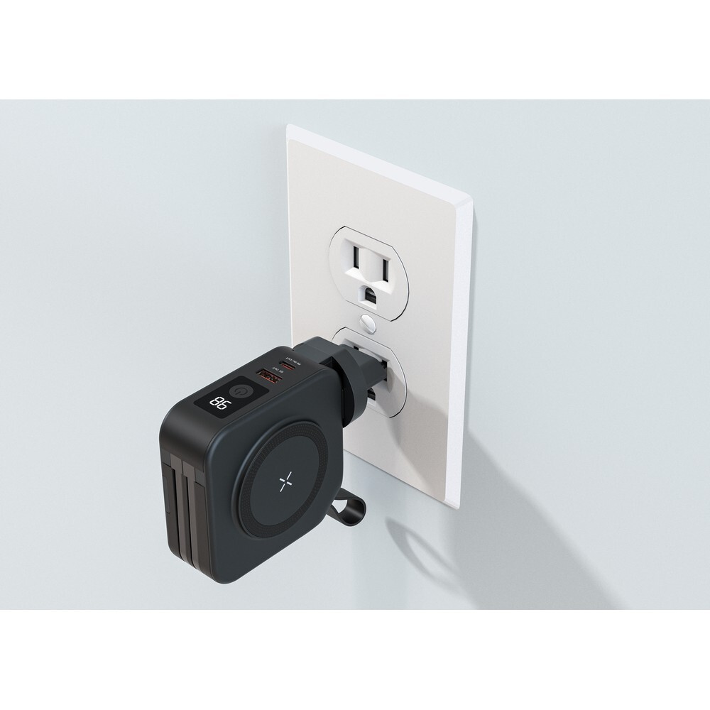 Ładowarka 5 w 1, power bank 10000 mAh, ładowarka ścienna, magnetyczna ładowarka bezprzewodowa 15W, adapter podróżny (Australia, UE, Wielka Brytania, USA, Azja), działa z telefonami posiadającymi możliwość ładowania indukcyjnego, wyjście USB, wyjście USB typu C, zintegrowane kable