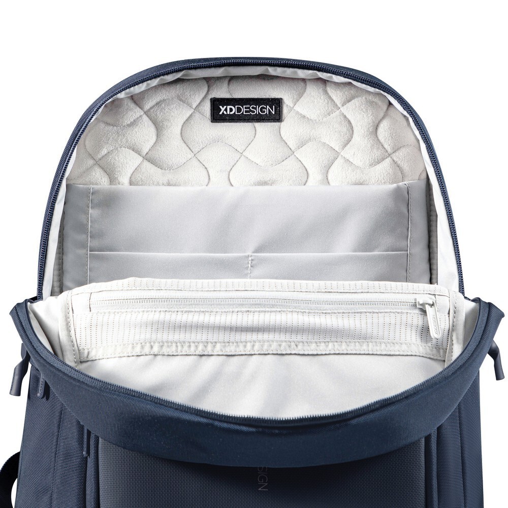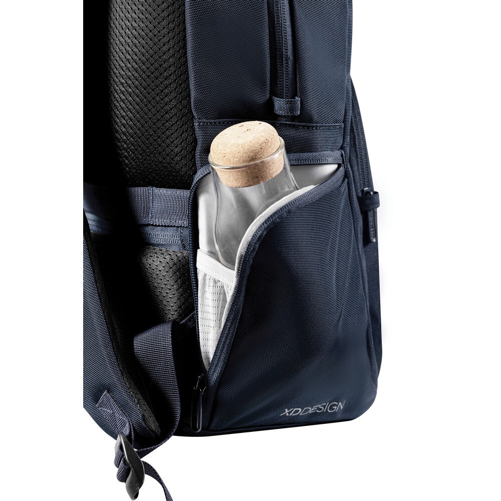 Plecak na laptopa 16”, wykonany z RPET oraz PU, klapa z systemem zamykającym Fidlock, specjalne zamki błyskawiczne zapewniające ochronę przed kieszonkowcami, kieszeń z ochroną RFID, posiada znacznik AWARE™, który jest gwarantem wykorzystania materiałów z recyklingu