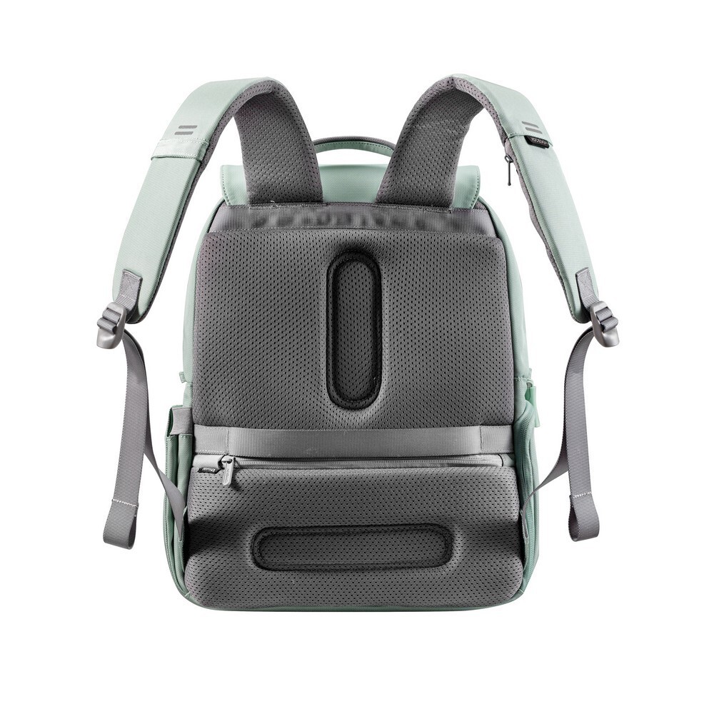 Plecak na laptopa 16”, wykonany z RPET oraz PU, klapa z systemem zamykającym Fidlock, specjalne zamki błyskawiczne zapewniające ochronę przed kieszonkowcami, kieszeń z ochroną RFID, posiada znacznik AWARE™, który jest gwarantem wykorzystania materiałów z recyklingu