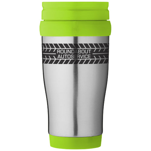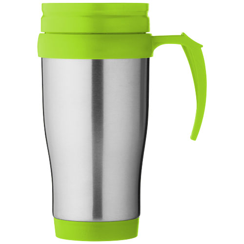 Sanibel jest idealnym kubkiem do picia napojów w podróży. Kubek posiada podwójnie izolowane ścianki, dzięki czemu napoje pozostają ciepłe przez długi czas. Odkręcana pokrywka typu "thumb-slide" ułatwia picie napojów o pojemności do 400 ml. Ponadto, uchwyt z ergonomicznym oparciem na kciuk zapewnia dobry chwyt. Kubek Sanibel został wykonany ze stali nierdzewnej i czarnego plastiku, dzięki czemu jest bardzo wytrzymały, odporny na korozję i łatwy do czyszczenia.