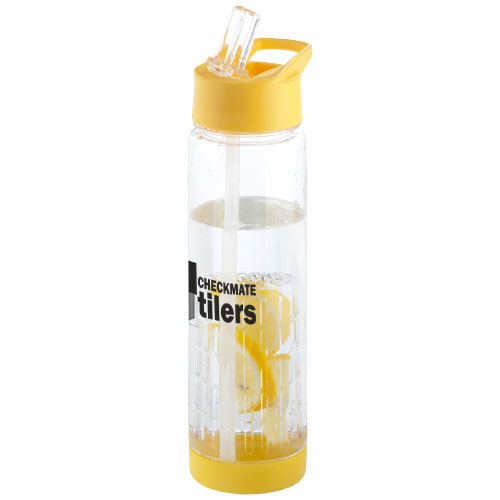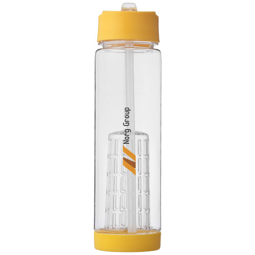 Tutti-frutti to duża butelka sportowa o pojemności 740 ml z małym dodatkiem. Posiada odkręcany nalewak do owoców, do którego można dodać dowolne zioła lub owoce, aby stworzyć smaczny napój. Butelka jest łatwa w użyciu dzięki odkręcanej pokrywce z otwieranym dzióbkiem do picia. Odkręć podstawę, aby uzyskać dostęp do wylewki i ułatwić czyszczenie. Butelka jest wykonana z Eastman Tritan™, dzięki czemu jest wolna od BPA, lekka, trwała, bezzapachowa i odporna na uderzenia.