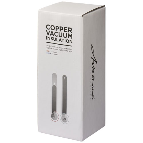 Ten wytrzymały kubek idealnie sprawdzi się w podróży i zmieści się w większości uchwytów. Wieczko szczelnie przylega do kubka, posiada otwieranie typu „flip-top”. Kubek posiada konstrukcję próżniową z podwójnymi ściankami i miedzianą izolacją, które utrzymują napoje gorące przez 8 godzin, a zimne przez 24 godziny. Taka konstrukcja zapobiega kondensacji na zewnątrz kubka. Pojemność to 500 ml. Całość zapakowana jest w pudełko upominkowe Avenue.