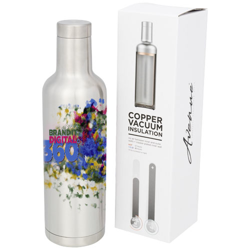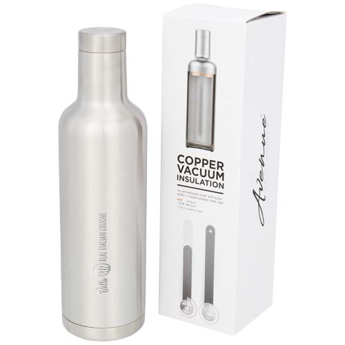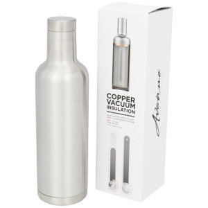 Dzięki miedzianej butelce z izolacją próżniową Pinto Twoje gorące napoje utrzymają temperaturę przez 12 godzin, a zimne – przez 48 godzin. Podwójne ścianki wykonane ze stali nierdzewnej stopnia 18/8, z izolacją próżniową, a ścianki wewnętrzne pokryte są powłoką miedzianą. Oznacza to, że można przechowywać napoje gorące lub zimne w zależności od potrzeb. Obudowa powlekana proszkowo. Pojemność wynosi 750ml. Zapakowany w pudełko upominkowe Avenue.
