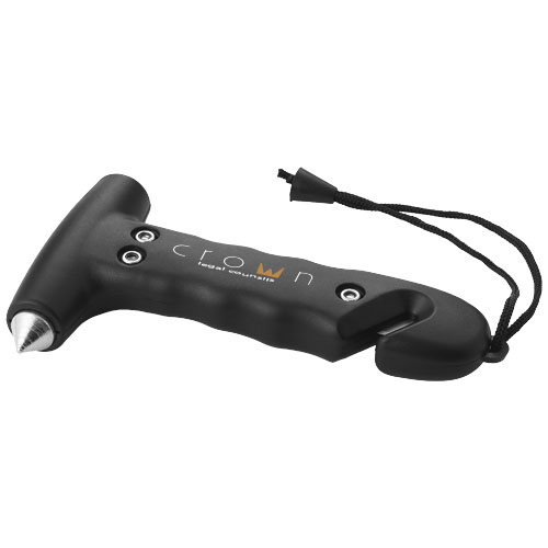 Młotek ratunkowy z paskiem na nadgarstek i wbudowanym przecinakiem do pasów w rękojeści. W sytuacji alarmowej można zastosować dwa ostre wybijaki do okien ze stali hartowanej i przecinak do pasów.