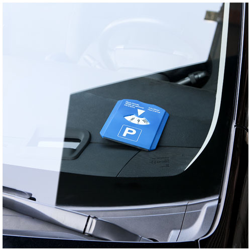 Dysk zawiera skrobaczkę do szyb i ściągaczkę z gumy, monetę do wózka i miernik bieżnika opon. Na odwrocie duży obszar na logo. Dysk zawiera na obudowie tekst "Godzina przyjazdu" w języku: niderlandzkim, angielskim, niemieckim oraz włoskim. Sprawdź zgodność z lokalnymi przepisami.