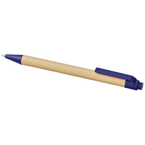 Notatnik z 60 kartkami w linię formatu A6 i długopisem do kompletu. Okładka i kartki wykonane z papieru makulatorowego. Notatnik i długopis pakowane razem.