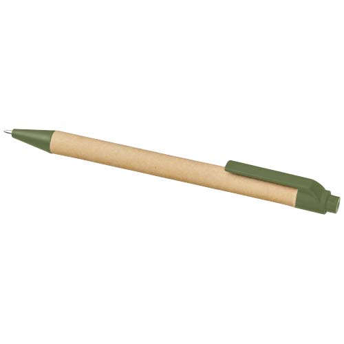 Notatnik z 60 kartkami w linię formatu A6 i długopisem do kompletu. Okładka i kartki wykonane z papieru makulatorowego. Notatnik i długopis pakowane razem.