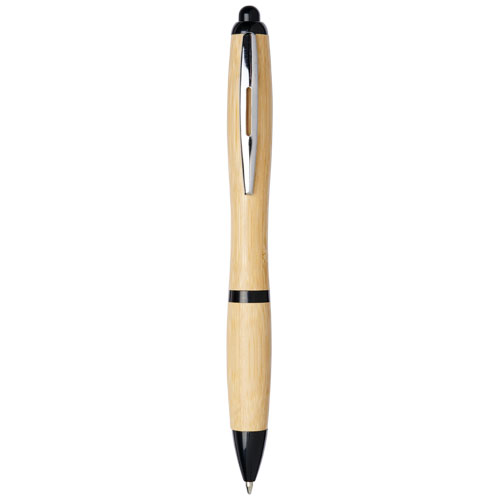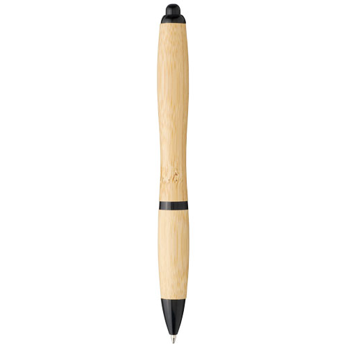 Przyjazny dla środowiska długopis automatyczny z korpusem wykonanym z bambusa, zaakcentowanym chromowanym klipsem i plastikowymi wykończeniami z plastiku ABS. Kolor materiału bambusowego może się różnić.