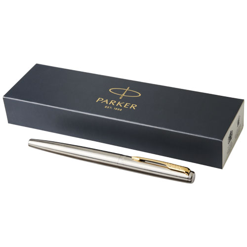Pióro wieczne Jotter jest nowoczesną interpretacją oryginalnego kultowego pióra wiecznego. Ze stalówką ze stali nierdzewnej, chromowanym korpusem, skuwką z polerowanej stali nierdzewnej i klipsem w kształcie strzałki. Sprzedawane w ozdobnym pudełku upominkowym Parker.