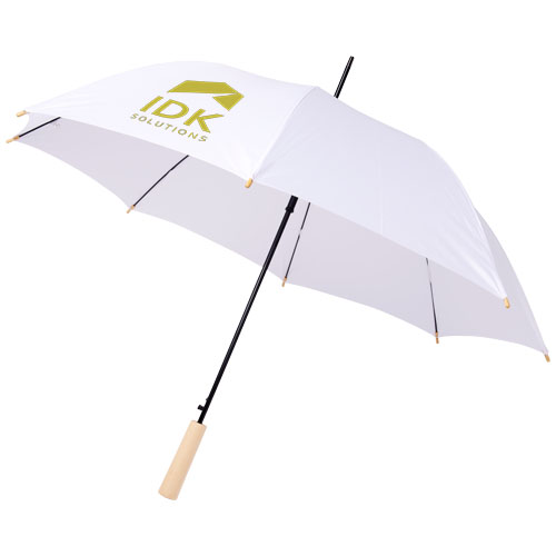 Automatyczne otwierany parasol z czaszą z poliestru Pongee z plastiku PET z recyklingu. Stabilna metalowa rurka, wysokiej jakości rama z żebrowaniem z włókna szklanego, oferująca elastyczność w warunkach wietrznych. Dzięki drewnianej rękojeści, nasadkom i czaszy wykonanej z poliestru Pongee z plastiku PET z recyklingu to ekologiczny wybór. Dostępny w szerokiej gamie nowoczesnych kolorów z dużą powierzchnią dekoracyjną na każdym z paneli.