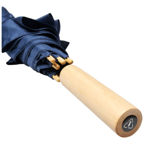Automatyczne otwierany parasol z czaszą z poliestru Pongee z plastiku PET z recyklingu. Stabilna metalowa rurka, wysokiej jakości rama z żebrowaniem z włókna szklanego, oferująca elastyczność w warunkach wietrznych. Dzięki drewnianej rękojeści, nasadkom i czaszy wykonanej z poliestru Pongee z plastiku PET z recyklingu to ekologiczny wybór. Dostępny w szerokiej gamie nowoczesnych kolorów z dużą powierzchnią dekoracyjną na każdym z paneli.