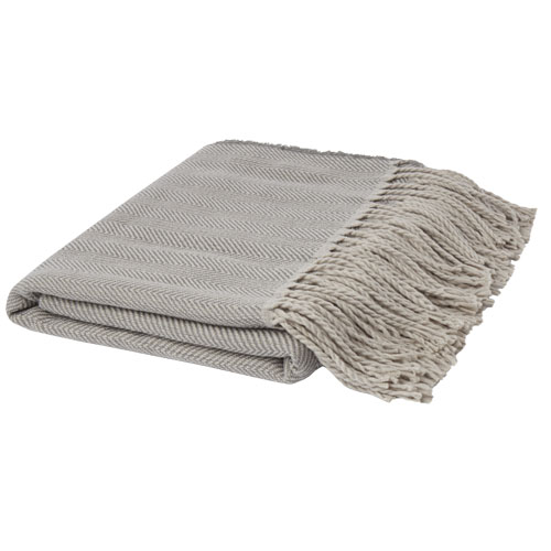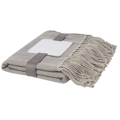 Narzuta o gramaturze 270g/m² z klasycznym wzorem w jodełkę, nadającym mu współczesny charakter. W zestawie znajduje się wstążka prezentowa i karta do zadruku, która może zostać dostosowana do indywidualnych potrzeb klienta. Wymiary: 127cm x 152cm.