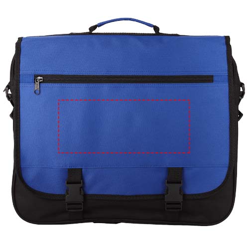 Torba wystawowa z regulowanym pasem na ramię oraz klapą zapinaną na sprzączki. Posiada przegrodę główną na zamek błyskawiczny oraz kilka otwartych kieszonek pod klapką.