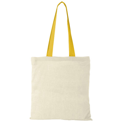 Nevada to lekka i przyjazna dla budżetu torba typu tote o gramaturze 100 g/m² z otwartą komorą główną i modnym akcentem dzięki kolorowym uchwytom do wyboru. Sprawia to, że bawełniana torba na zakupy będzie przyciągać wzrok na każdej imprezie, kongresie czy festiwalu. Uchwyty mają 30 cm, dzięki czemu można ją łatwo nosić na ramieniu. Torba oferuje wystarczająco dużo miejsca na różne loga lub teksty, małe lub duże.