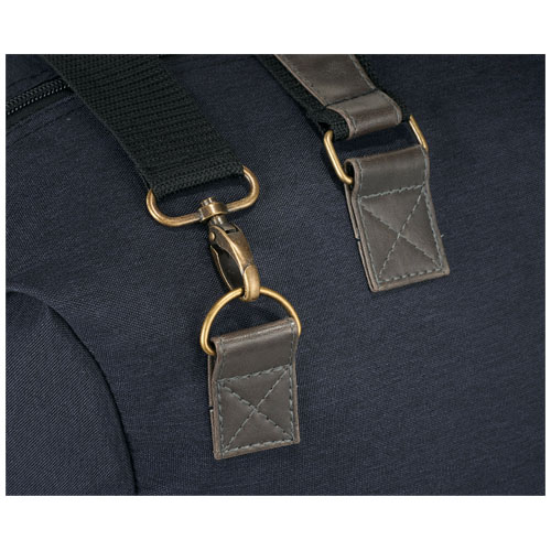 Połączenie klasycznego i nowoczesnego stylu. Torba posiada główną przegrodę na zamek, dedykowaną przegrodę na buty na zamek oraz przednią kieszeń na zamek. Odpinany, regulowany i wyściełany pasek na ramię oraz rączki do przenoszenia. Akcenty z Imitacji skóry oraz postarzany osprzęt.