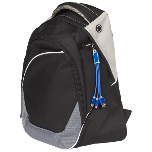 Metalowy kabel do ładowania 3 w 1 z kółkiem na klucze. Metalowy kabel do ładowania 3 w 1 z kółkiem na klucze wyposażony jest w jedną końcówkę typu C, jedną końcówkę USB A oraz podwójną końcówkę 2 w 1 zgodną z urządzeniami z Apple iOS i Android. W zestawie brelok. Aby naładować urządzenia Apple: umieścić kabel stroną bez bolców w urządzeniu, aby naładować urządzenia z systemem Android: umieścić kabel stroną z bolcami w urządzeniu.