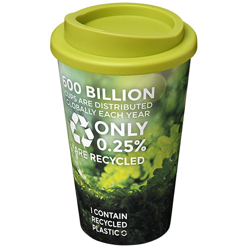 Dwuwarstwowy, izolowany kubek z zakręcaną pokrywą odporną na zalanie. Zewnętrzna warstwa kubka wykonana jest z tworzywa sztucznego pochodzącego z recyklingu. Kubek charakteryzuje się pełnokolorowym, zawijanym wzorem dopasowanym do produktu, dzięki czemu jest trwały. Zgodny z EN12875-1; nadaje się do mycia w zmywarce oraz podgrzewania w kuchence mikrofalowej. Pojemność wynosi 350 ml. Mieszaj i łącz kolory, aby stworzyć idealny kubek. Wykonano w Wielkiej Brytanii. Produkt wolny od BPA.