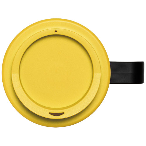 Dwuwarstwowy, izolowany kubek z zakręcaną pokrywą odporną na zalanie i uchwytem. Zewnętrzna warstwa kubka wykonana jest z tworzywa sztucznego pochodzącego z recyklingu. Kubek charakteryzuje się pełnokolorowym, zawijanym wzorem dopasowanym do produktu, dzięki czemu jest trwały. Zgodny z EN12875-1; nadaje się do mycia w zmywarce oraz podgrzewania w kuchence mikrofalowej. Pojemność wynosi 350 ml. Mieszaj i łącz kolory, aby stworzyć idealny kubek. Skontaktuj się z działem obsługi klienta, aby uzyskać informacje o dodatkowych opcjach kolorystycznych. Wykonano w Wielkiej Brytanii. Oferowany w białym pudełku upominkowym. Produkt wolny od BPA.