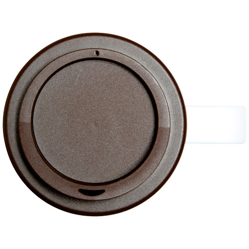 Dwuwarstwowy, izolowany kubek z zakręcaną pokrywą odporną na zalanie i uchwytem. Zewnętrzna warstwa kubka wykonana jest z tworzywa sztucznego pochodzącego z recyklingu. Kubek charakteryzuje się pełnokolorowym, zawijanym wzorem dopasowanym do produktu, dzięki czemu jest trwały. Zgodny z EN12875-1; nadaje się do mycia w zmywarce oraz podgrzewania w kuchence mikrofalowej. Pojemność wynosi 350 ml. Mieszaj i łącz kolory, aby stworzyć idealny kubek. Skontaktuj się z działem obsługi klienta, aby uzyskać informacje o dodatkowych opcjach kolorystycznych. Wykonano w Wielkiej Brytanii. Oferowany w białym pudełku upominkowym. Produkt wolny od BPA.