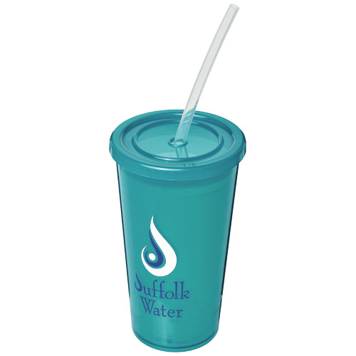 Dwuwarstwowy, półprzezroczysty izolowany kubek. Dostarczany z elastyczną rurką wykonaną z silikonu. Pojemność wynosi 350 ml. Wykonano w Wielkiej Brytanii.