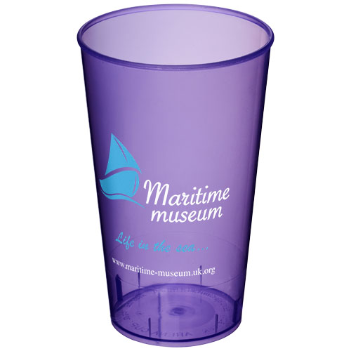 Jednowarstwowy kubek z tworzywa sztucznego. Wybór niedrogich kubków wielokrotnego użytku. Pojemność wynosi 375 ml. Wykonano w Wielkiej Brytanii.