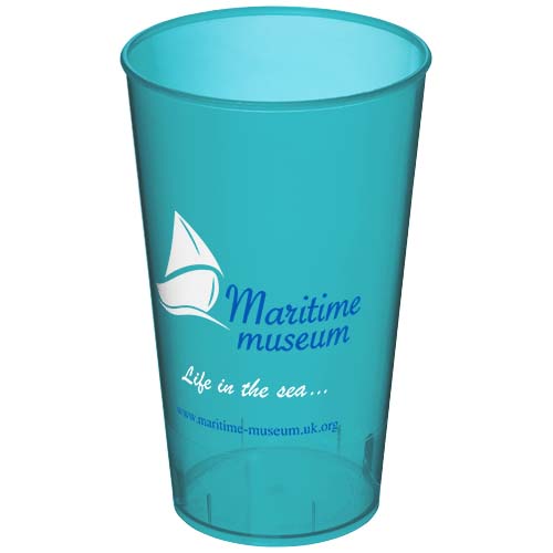 Jednowarstwowy kubek z tworzywa sztucznego. Wybór niedrogich kubków wielokrotnego użytku. Pojemność wynosi 375 ml. Wykonano w Wielkiej Brytanii.