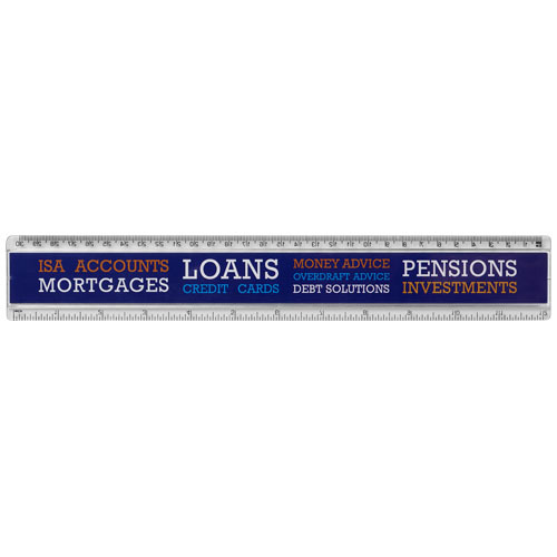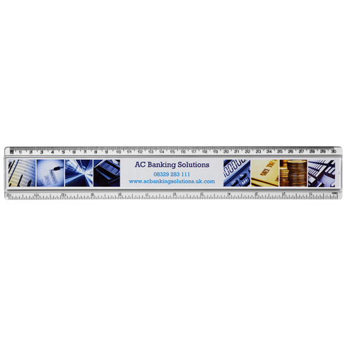 Linijka Ellison o długości 30 cm wykonana z tworzywa sztucznego z papierową wkładką / Przezroczysty bezbarwny