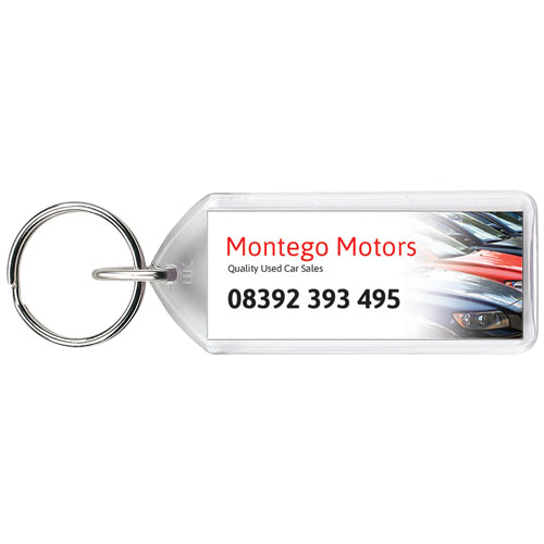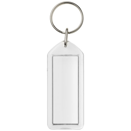 Prostokątny breloczek F1 z metalowym pękiem na klucze. Ten brelok można otwierać za pomocą monety. Metalowy pierścień cechuje płaski profil, który idealnie nadaje się do wysyłek. Wymiary wkładu do druku: 5,0 cm x 2,0 cm.