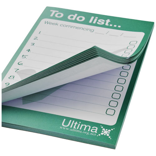 Biały notatnik Desk-Mate® w formacie A6 Składa się z czystych kartek o gramaturze 80g/m2. Standardowo 50 kartek, dostępny również w wersjach 25 lub 100 kartek. Możliwość zdobienia każdego arkusza. Wymiar arkusza: 105x148mm.