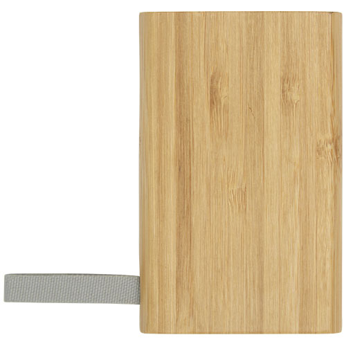 Powerbank o pojemności 5 000 mAh wykonany z bambusa dla telefonów komórkowych lub innych urządzeń cyfrowych. Posiada lampki sygnalizacyjne LED oraz taśmę wykonaną z materiału RPET. W zestawie kabel ładowania Micro-USB. Dostarczany w pudełku wykonanym w 100% z materiałów z certyfikatem FSC wraz z instrukcją obsługi z certyfikatem FSC. Ponieważ bambus jest produktem naturalnym, mogą występować niewielkie różnice w kolorze i rozmiarze, które mogą mieć wpływ na ostateczny efekt dekoracji.