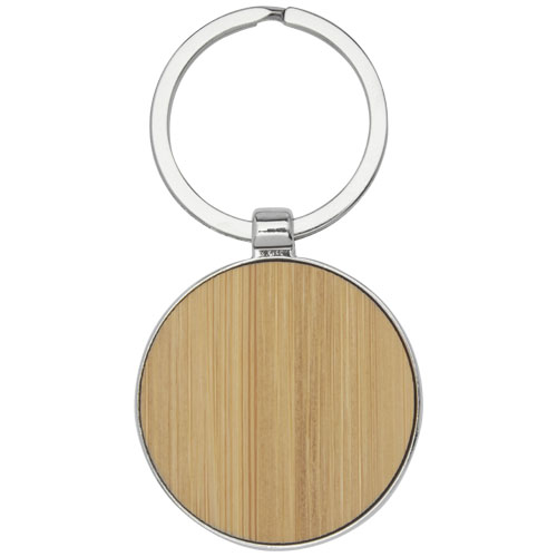 Wysokiej jakości okrągły brelok do kluczy wykonany z bambusa i z oprawą ze stopu cynku, dostarczany w kopercie z brązowego papieru Kraft. Średnica breloka do kluczy wynosi 4 cm. Przeznaczony do grawerunku laserowego.